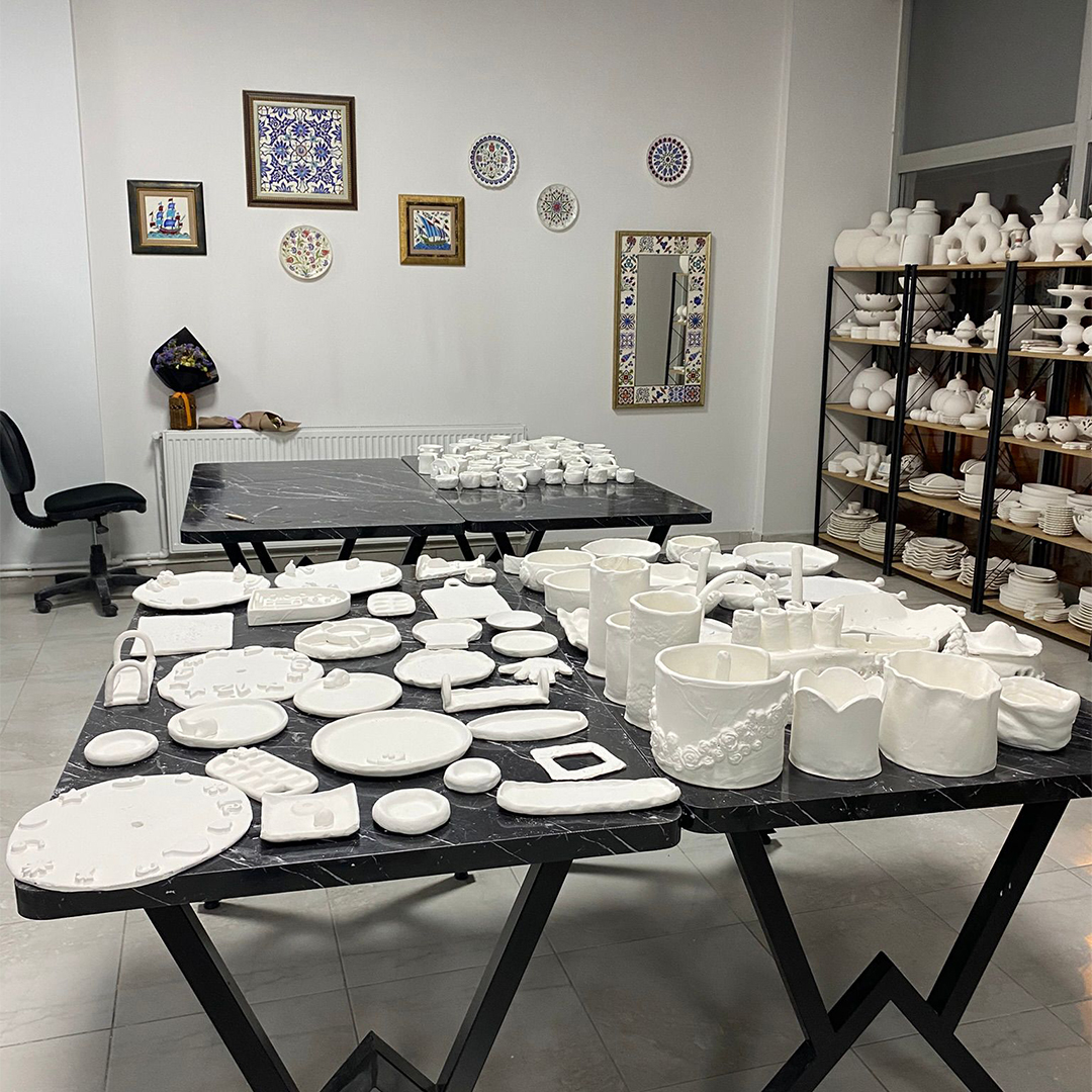 Tasarım aşamasından sonra, seramik çamuruyla çalışmaya başlanır veya çini üzerine desenler uygulanır. Profesyonel rehberlik eşliğinde teknikleri öğretilip eserler adım adım oluştururulur.